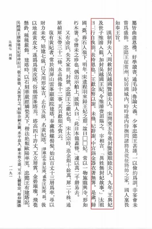 《十国春秋》“陌上花开可缓归”出处 笔者详检《十国春秋》第77卷至81卷武肃王钱鏐至忠懿王钱俶“三世五王”及钱俶王妃孙氏、俞氏、黄氏列传,均未出现与“陌上花开”有关记载,但在《忠懿王妃孙氏》列传中则明确:“汉制拜夫人,周勅封吴越国贤德夫人。宋开宝五年进封贤德顺穆夫人。九年,王与妃及世子惟睿入觐,加封吴越国王妃。”在俞氏、黄氏列传中分述:“又有俞氏,失其家世、封号,忠懿王继妃也。”“复有黄妃者,常于南屏山雷峰显岩院建塔。”由此得知,首位被宋太祖赵匡胤封为王妃的,是钱弘俶的夫人、江南望族、名门之后孙太真。吴越国王钱弘俶,在孙太真逝世后,尚先后有俞氏、黄氏两位继妃。归宋后,钱弘俶为避宋太祖之父赵弘殷名讳改名钱俶。