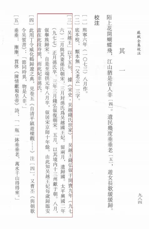 《十国春秋》中钱鏐夫人孙氏封吴越国王妃记载在由张志烈、马德富、周裕锴担任主编,耗时二十余年编著完成的《苏轼全集校注》中,苏学专家对苏轼《陌上花三首》逐一进行校注,厘清了长期以来人们对苏轼诗句的模糊认知。苏轼的第一首诗,将吴人歌《陌上花》事做了极简概述。陌上花开蝴蝶飞,江山犹是昔人非。遗民几度垂垂老,游女长歌缓缓归。