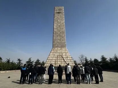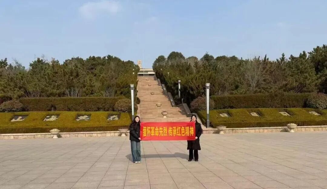 外国语学院青岛家国同行实践团来到青岛市崂山革命烈士陵园,开展以“缅怀先烈志,共筑家国魂”为主题的实践活动。成员们先是缓步绕行纪念碑,仔细瞻仰碑上镌刻的烈士姓名,聆听讲解员讲述革命先烈抛头颅、洒热血的英雄事迹。随后,他们怀着崇敬的心情,认真擦拭墓碑、敬献鲜花,表达对先烈的深切缅怀。最后,全体成员于纪念碑前,肃立默哀,向为民族解放、国家独立而英勇献身的革命先烈致以最崇高的敬意。此次实践活动让大家接受了一次深刻的爱国主义教育和革命传统教育,激励大家以实际行动践行“家国同行”的初心。