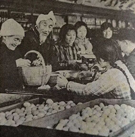 山西省满城县供销总社认真落实农村收购价格政策,社员踊跃出售鲜蛋。(李宪让 摄影)