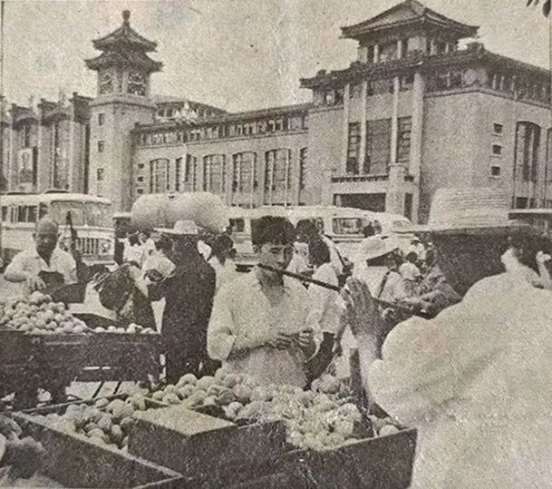 北京火车站前的水果零售车(孟仁泉 摄影)