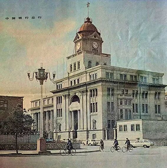 中国银行开展对外业务。上图为中国银行总行大楼,下图为总行营业厅。