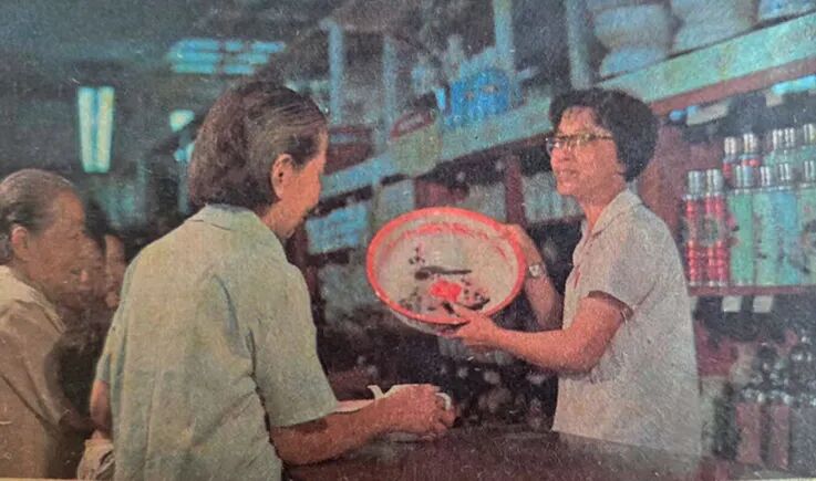 北京天桥商场售货员孙云珍帮助顾客挑选搪瓷盆(孟仁泉摄影)
