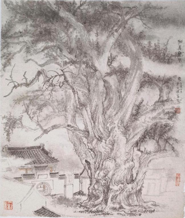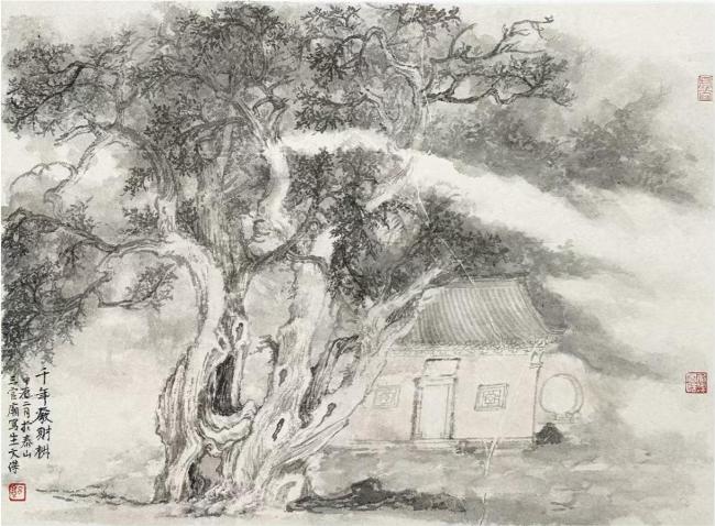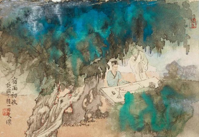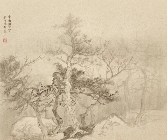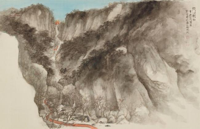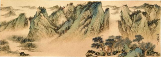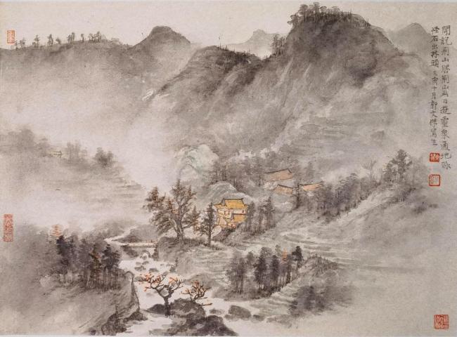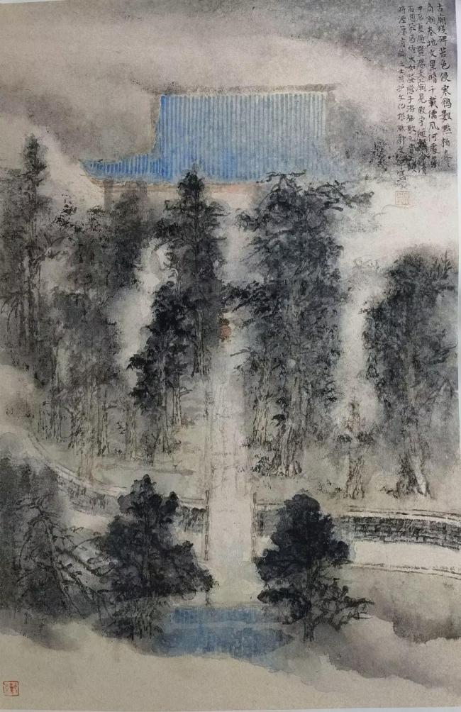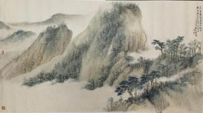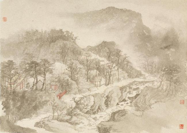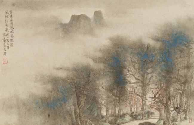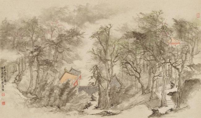 在这样一个总体的感觉之下,他也尝试用一些新的方法,比如用淡彩的颜色,但这种设色的方法不同于中国传统绘画中的浅绛,其画法更多的是一种水彩的感觉,因为有了以宋元为本,这种设色并没有消融其本色。