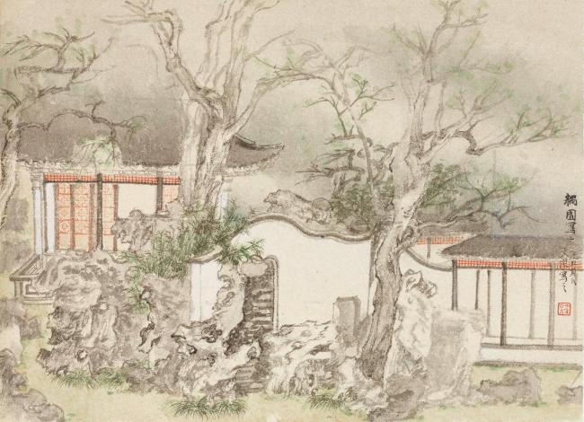 有了这样的基本,文杰在笔墨处理上的精微处,表现在布景和构图方面,完全是吸收了宋元的画法,有的地方基本上是界画,画的却非常轻松,所谓的工而不腻,一眼能看到元代绘画的影子。应该说他整个的调性属于元代倪云林一路,这就有了画面中的“淡”和“渴”的笔墨表达,却不是倪云林的那种“简”。