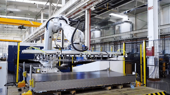 中通客车在原材料处理过程中,采用大型液压设备进行冲压,一次性完成各种复杂造型,应用激光切割自动化下料工艺,精度高、效率高、板材一致性高,每一处精准操作都为后续焊接工序筑牢基础。