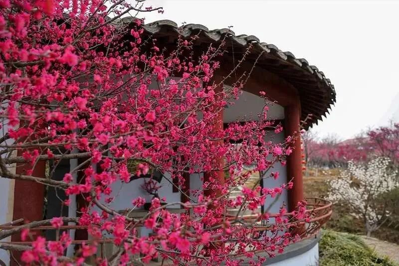 园内的 “百梅图” 长廊、咏梅诗词碑廊、玉照堂(梅文化展厅)等人文景观,与踏雪桥、冷香桥、暗香浮动榭等亭台楼阁交相辉映。漫步其间,红葩灼灼、翠英点点,仿佛穿越到了江南园林,每一步都能邂逅不同的诗意。