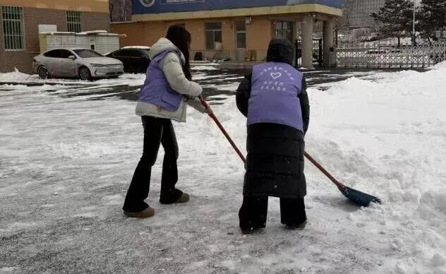 医护学院知行文博实践队来到烟台市莱山区圣恩艺术教育机构开展扫雪志愿活动。团队成员迅速分工,有的挥舞铁锹破除冰层,有的手持扫帚清扫路面,有的合力搬运积雪至指定区域,大家相互配合、干劲十足。尽管寒风凛冽,积雪没过鞋袜,但队员们始终热情高涨,额间的汗水与飘落的雪花相映成趣,构成冬日里一道温暖的风景线。此次扫雪行动不仅为艺术机构师生及周边群众消除了出行隐患,更让同学们在基层实践中用青春力量为社会服务注入温暖动能。