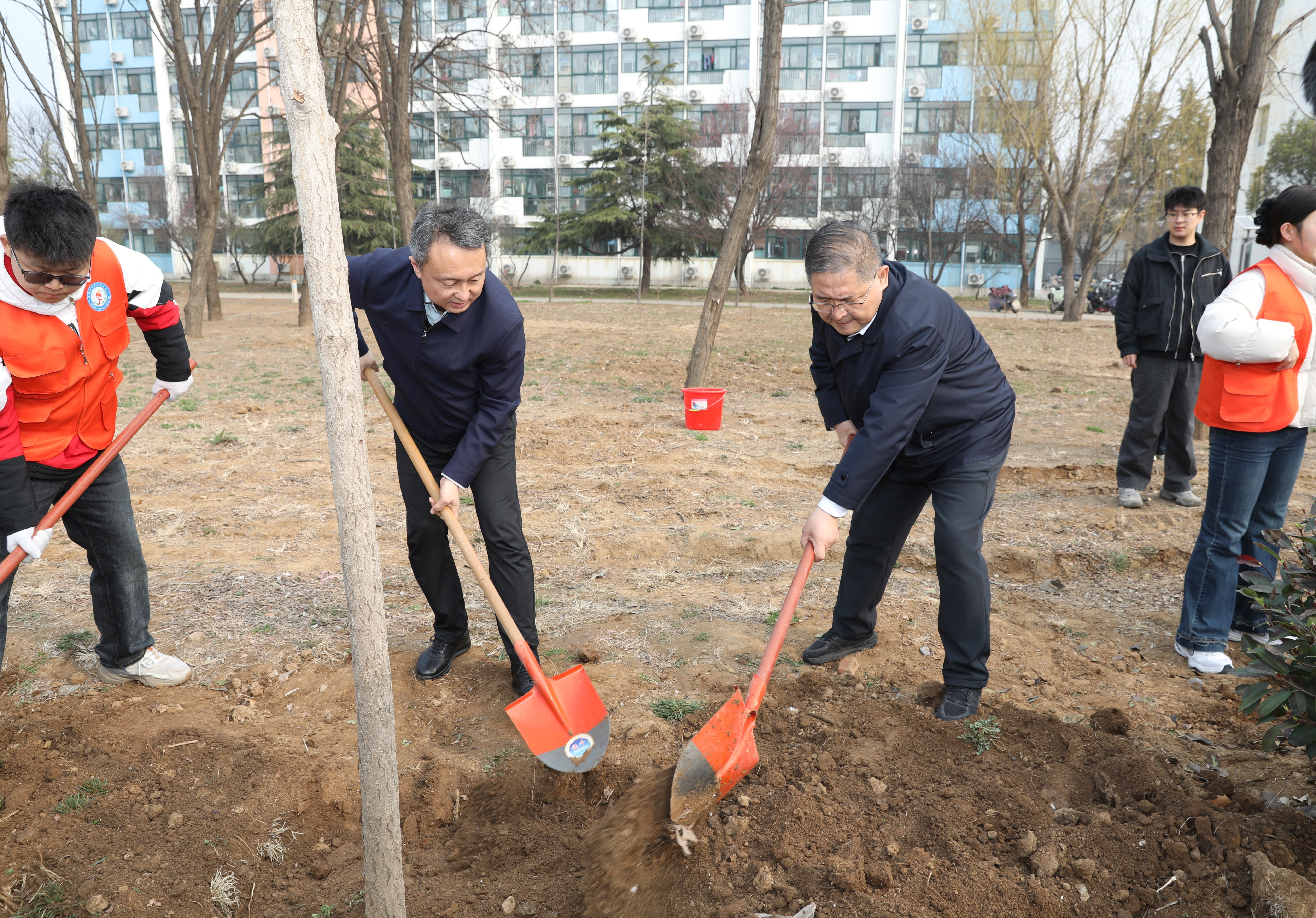 植树现场,大家热情高涨、干劲十足,挥锹培土,提水浇灌,热火朝天的劳动气息与春日的微风交织成一幅动人的画卷。在默契的配合下,一株株新植的银杏树苗便在春风中傲然挺立,不仅为校园增添了盎然绿意,更以实际行动诠释了校地携手、共建生态的美好承诺。