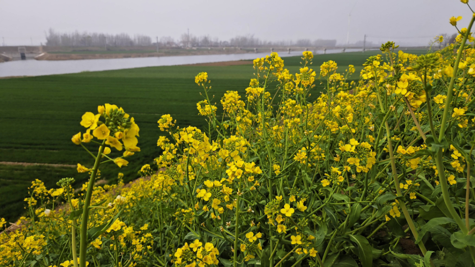 近日,洙赵新河两岸金黄的油菜花竞相绽放,与碧水、风车相映成趣,勾勒出一幅生机盎然的生态画卷。