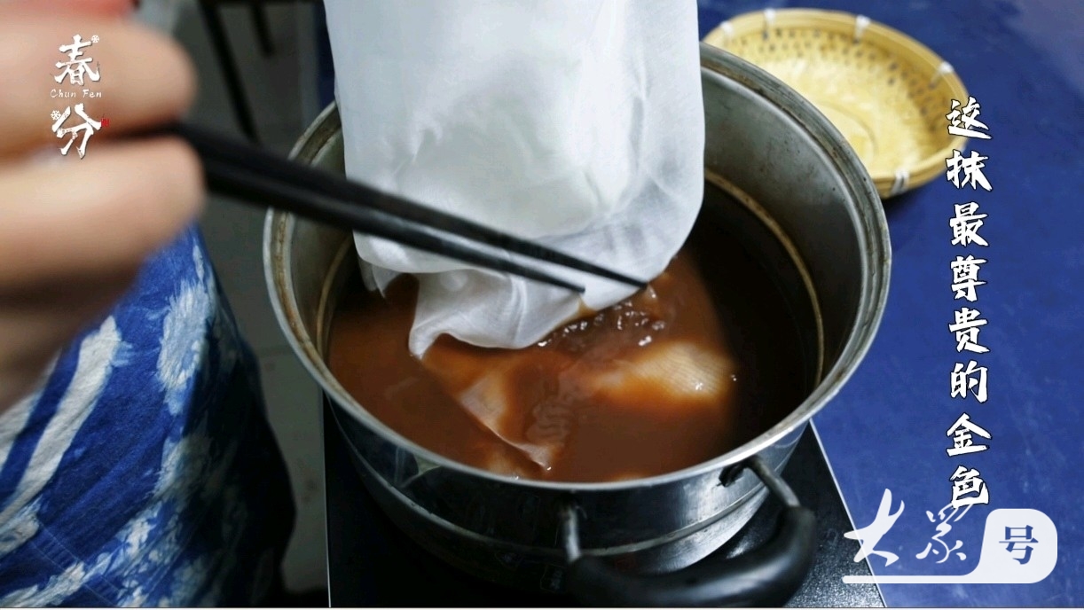 春分的火候讲究平和,不疾不徐。正如南宋诗人周必大所言:“石中韫着无瑕玉,矿里淘成紫磨金。”美玉蕴藏于石,精金淘洗于矿——世间最珍贵的色泽,都需要时间和耐心的熬煮。锅中水色渐次变化。清转淡黄,黄化金红,金红深处,浮起一层若有若无的紫气。这便是“紫磨金”。东汉孔融在《圣人优劣论》中称:“金之优者,名曰紫磨,犹人之有圣也。”上品黄金,方称紫磨;正如人中圣贤,方显尊贵。