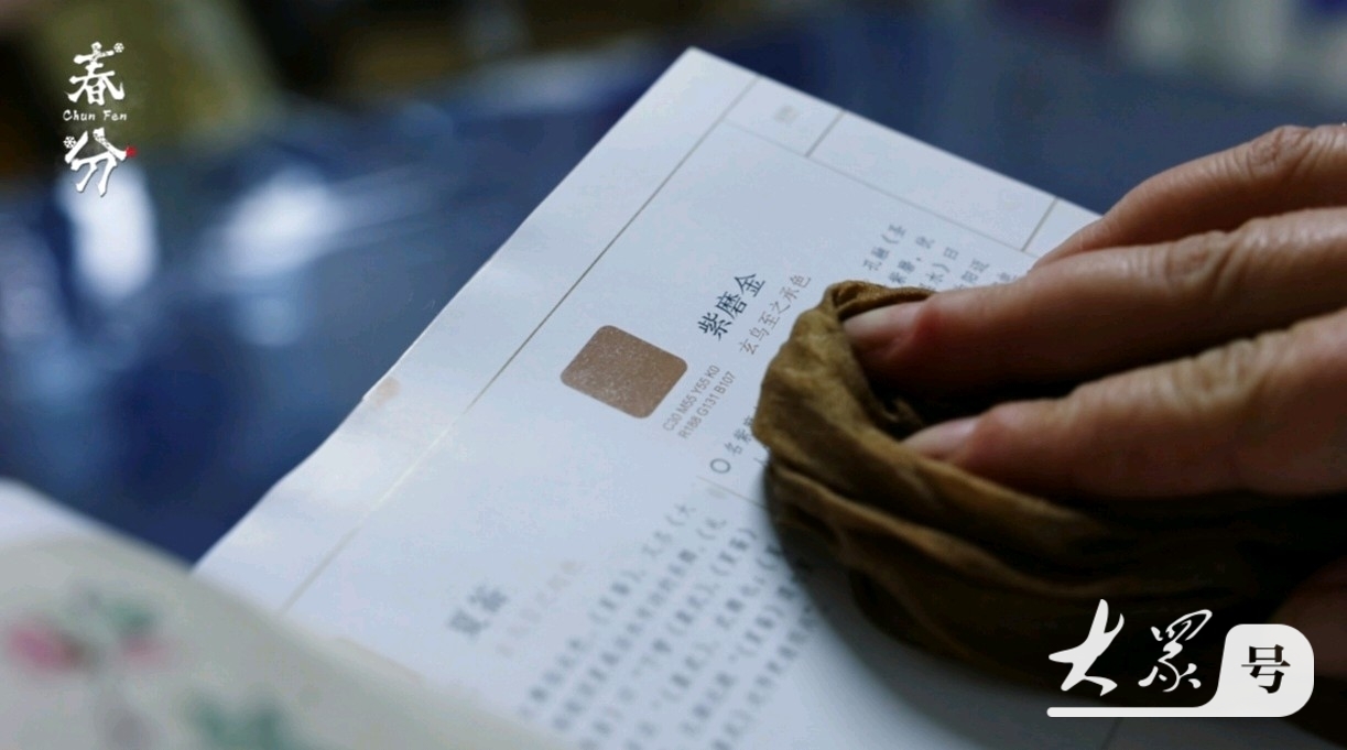 春分是二十四节气中的第四个节气。春分日,昼夜均而寒暑平。此时节春分三候,玄鸟至,雷乃发声,始电——阴阳相半,万物生发。古人将物候流转凝为色彩,每个节气对应着十二种中国传统色,而“紫磨金”正位列其中。