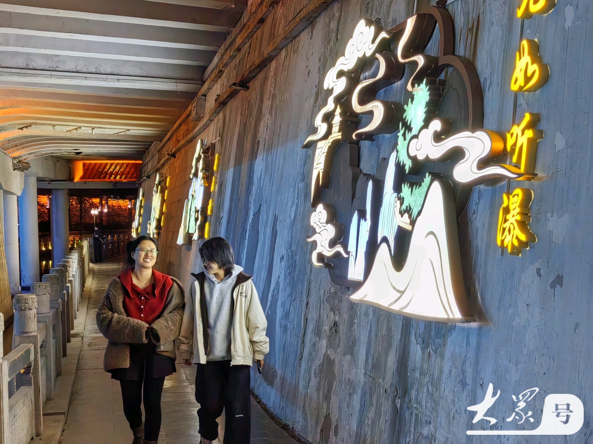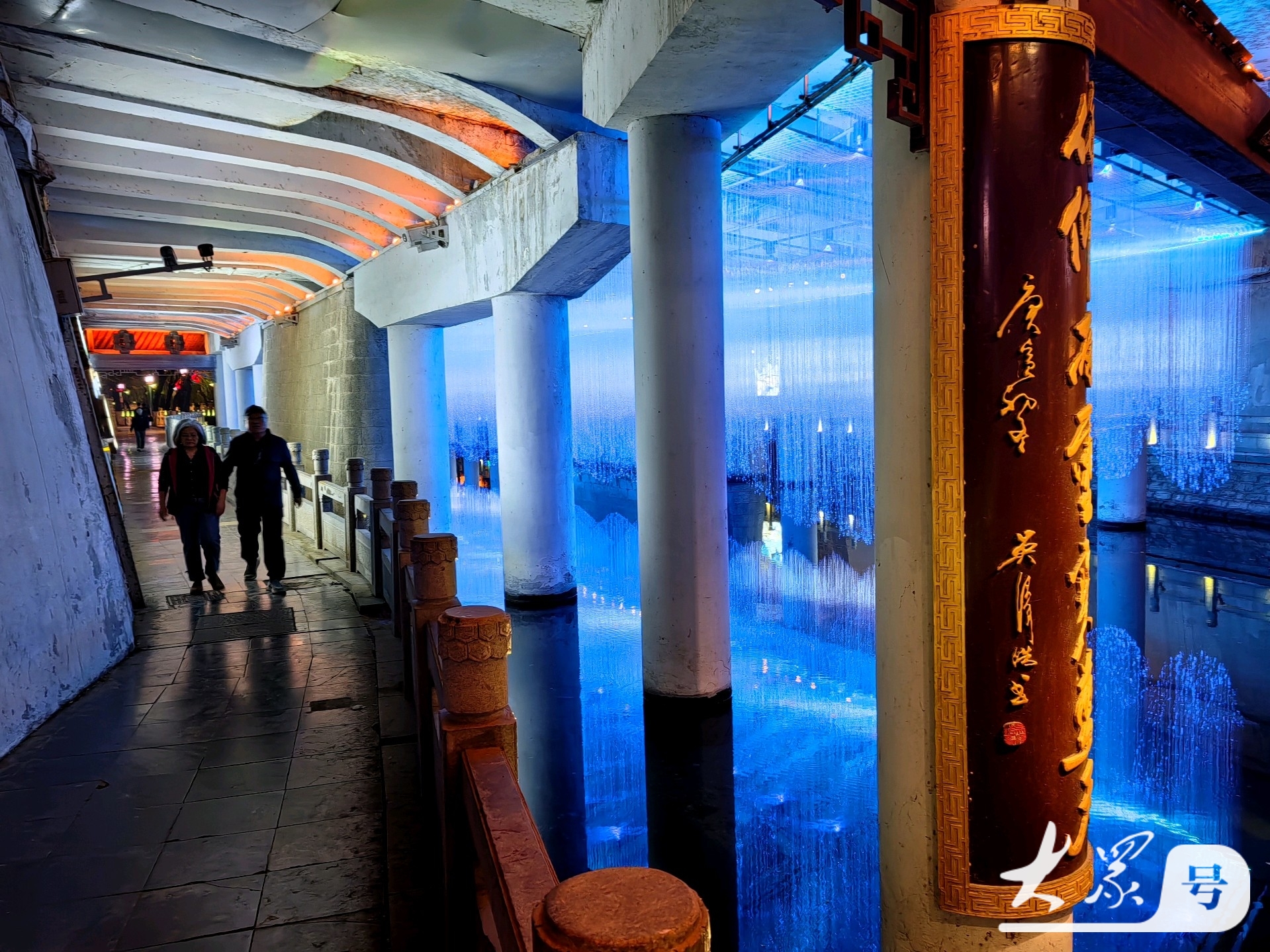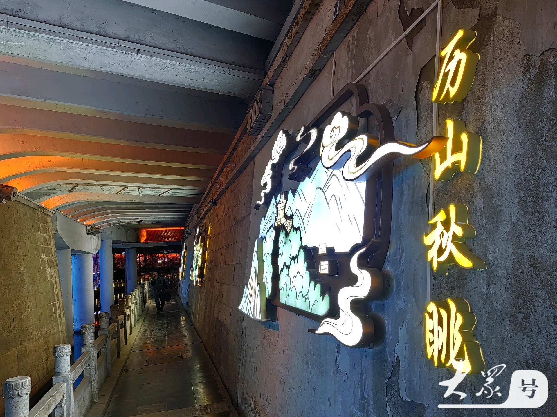 桥洞内壁点亮“济南新八景”立体发光标识,趵突腾空、历山秋眺等盛景以光影形式次第呈现。
