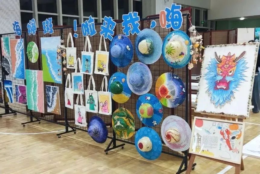 两城中学本次海洋教育特色成果展以“向阳而生 逐梦海洋”为主题,共分为大海的礼物、斑斓海两个篇章。大海的礼物分为贝壳粘贴手工制作十二生肖主题及遮阳帽帆布包彩绘;斑斓海则是用石英砂制作海洋主题肌理画。石英沙画是一种沙画艺术,利用石英材质研磨成细沙,再调和丙烯颜料和塑型膏,调和而成就能粘在画布上,呈现的作品具有很强的颗粒感、层次感、立体感。两城中学将以此为契机,深化课程理念,整合多学科资源,创设更多更好更加贴近学生的课程体系。