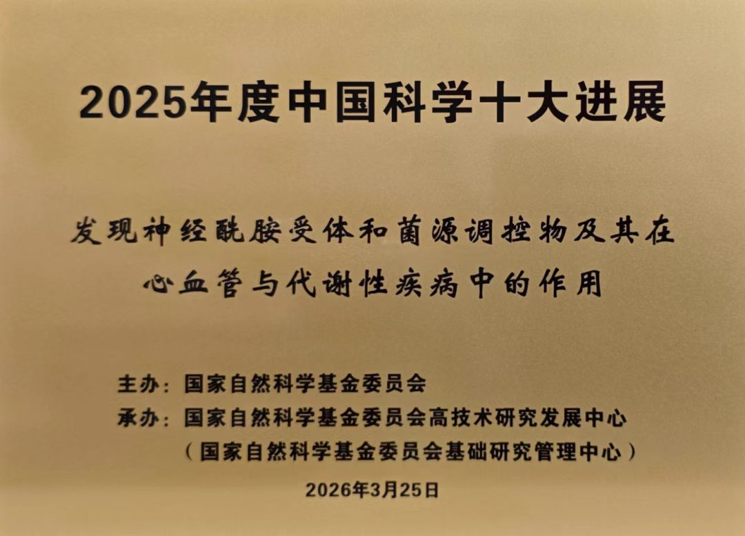 山东大学孙金鹏教授、于晓教授团队联合北京大学姜长涛教授、孔炜教授、乔杰院士、汪锴研究员等科学家团队,以及中日友好医院郑金刚教授团队、温州医科大学郑明华教授团队等合作完成的“发现神经酰胺受体和菌源调控物及其在心血管与代谢性疾病中的作用”入选其中。