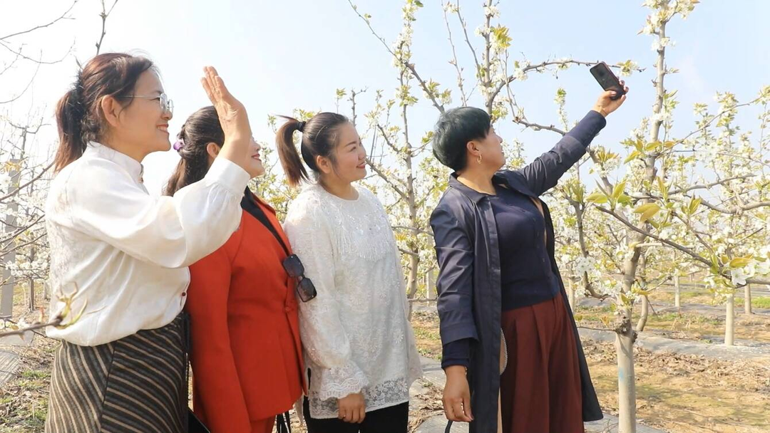 游客苗凌霞:“平时上班太忙了,今天带着几个朋友来梨园,过来拍拍照、打打卡,这种放松的感觉太棒了。”