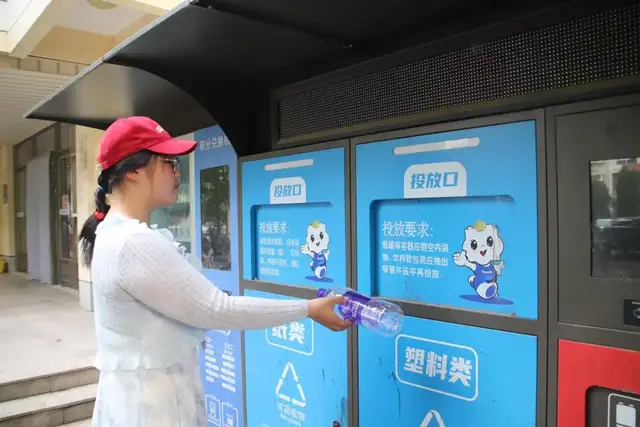 校园遍布不同颜色的分类垃圾桶,师生自觉进行垃圾分类,准确投放,可回收垃圾变资源,得到了二次利用。