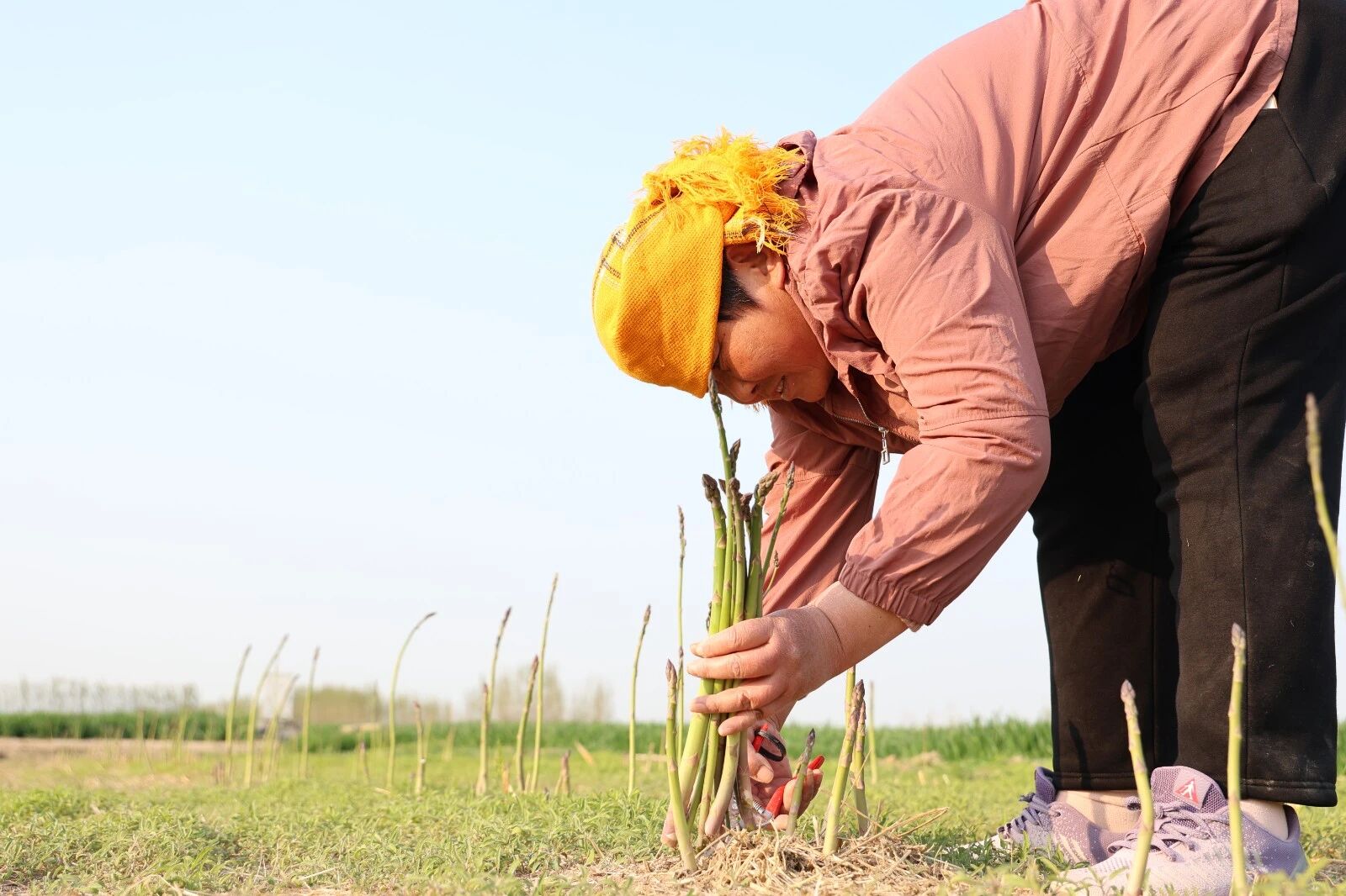 春日时节,邹平市魏桥镇北韩村的7亩芦笋田里,鲜嫩的芦笋破土冒尖,迎来头茬丰收。农户们穿梭田间地头,弯腰、采摘、装筐,指尖翻飞间,一根根翠绿芦笋被收入篮中,繁忙景象尽显乡村产业的蓬勃生机。
