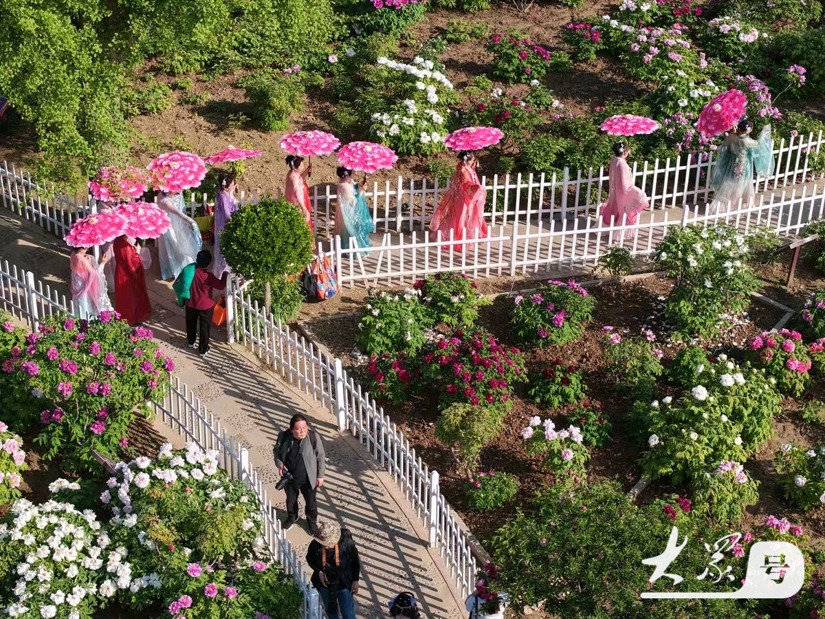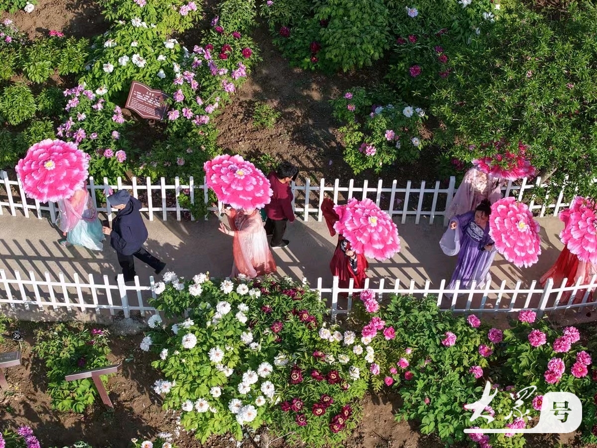 4月10日,菏泽牡丹节盛大开幕,菏泽牡丹园牡丹花到了盛开期,从航拍的视觉俯瞰,一眼望不到头的牡丹花海,直接把春天焊在曹州百花园里了。