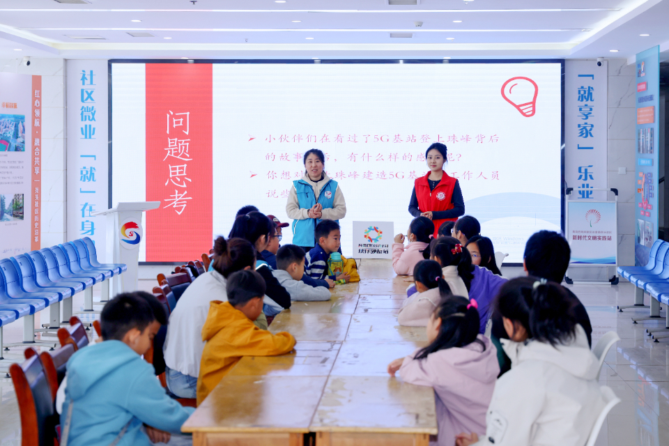 随后播放的纪实视频更是让人热血沸腾 —— 在高寒缺氧、风雪肆虐的极端环境下,通信建设者们不畏艰险,在珠峰建起一座座通信基站。视频一结束,抢答环节直接燃爆全场!“6500 米!5800 米!”孩子们精准喊出基站海拔,眼神里满是骄傲与敬佩。艰苦奋斗、勇攀高峰的精神,就这样悄悄种进了少年心里。