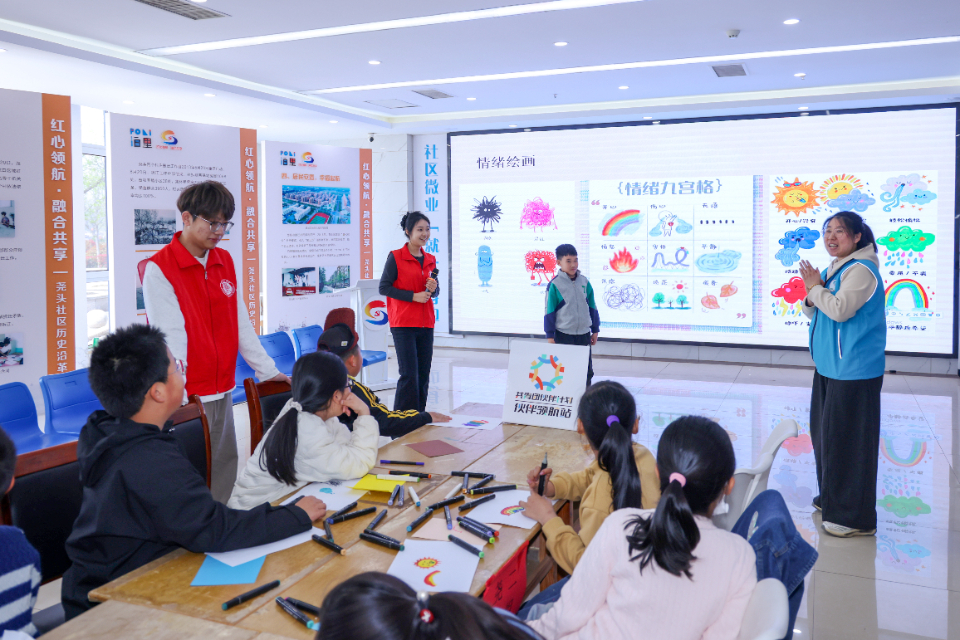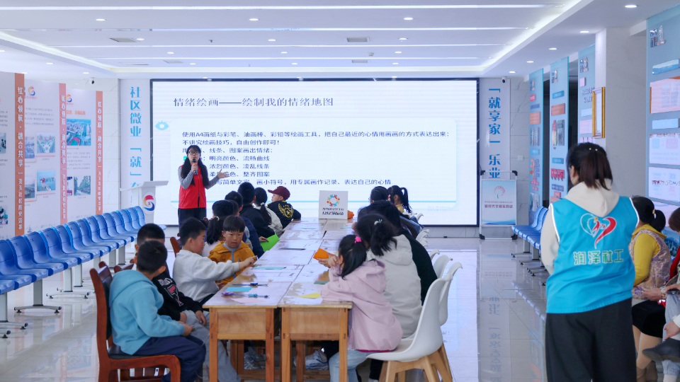 现场还上演了趣味十足的情绪模仿秀,孩子们上台用夸张表情、可爱肢体演绎各种心情,台下猜得不亦乐乎。最后大家拿起画笔,把心情画进画里,在创作中梳理内心、接纳自我,学会感知情绪、管理情绪,为心理健康稳稳护航。