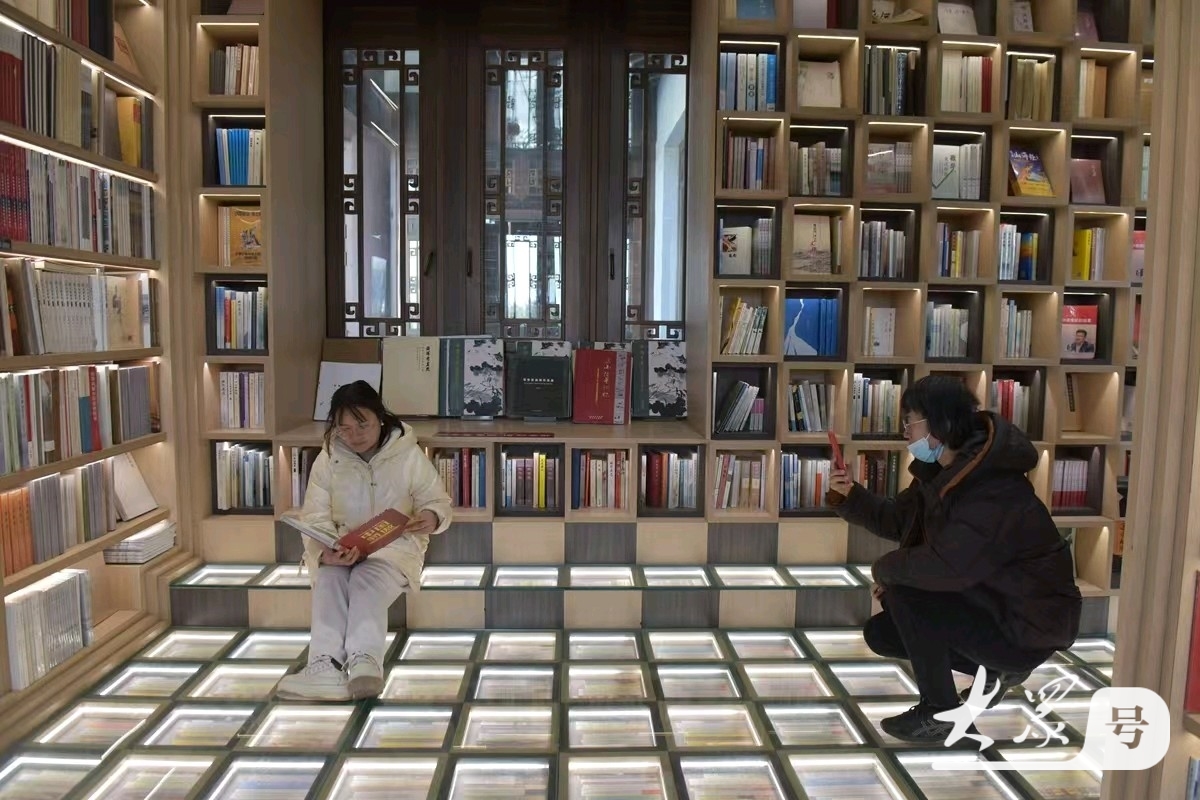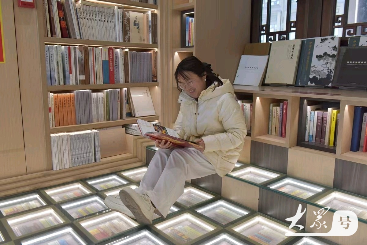 步入楼内,网红书店空间设计极具巧思,错落的书架层层叠叠,暖光浸润其间,满墙典籍汇聚成知识的海洋。