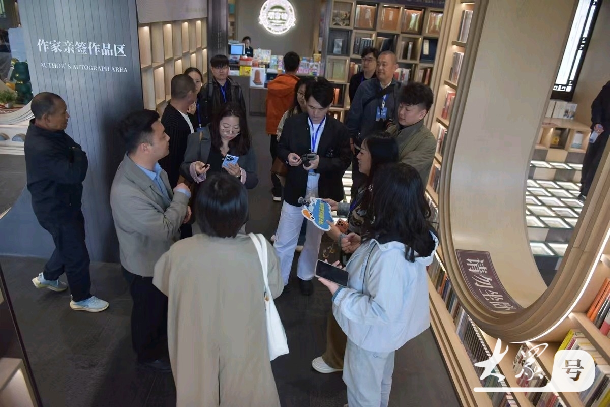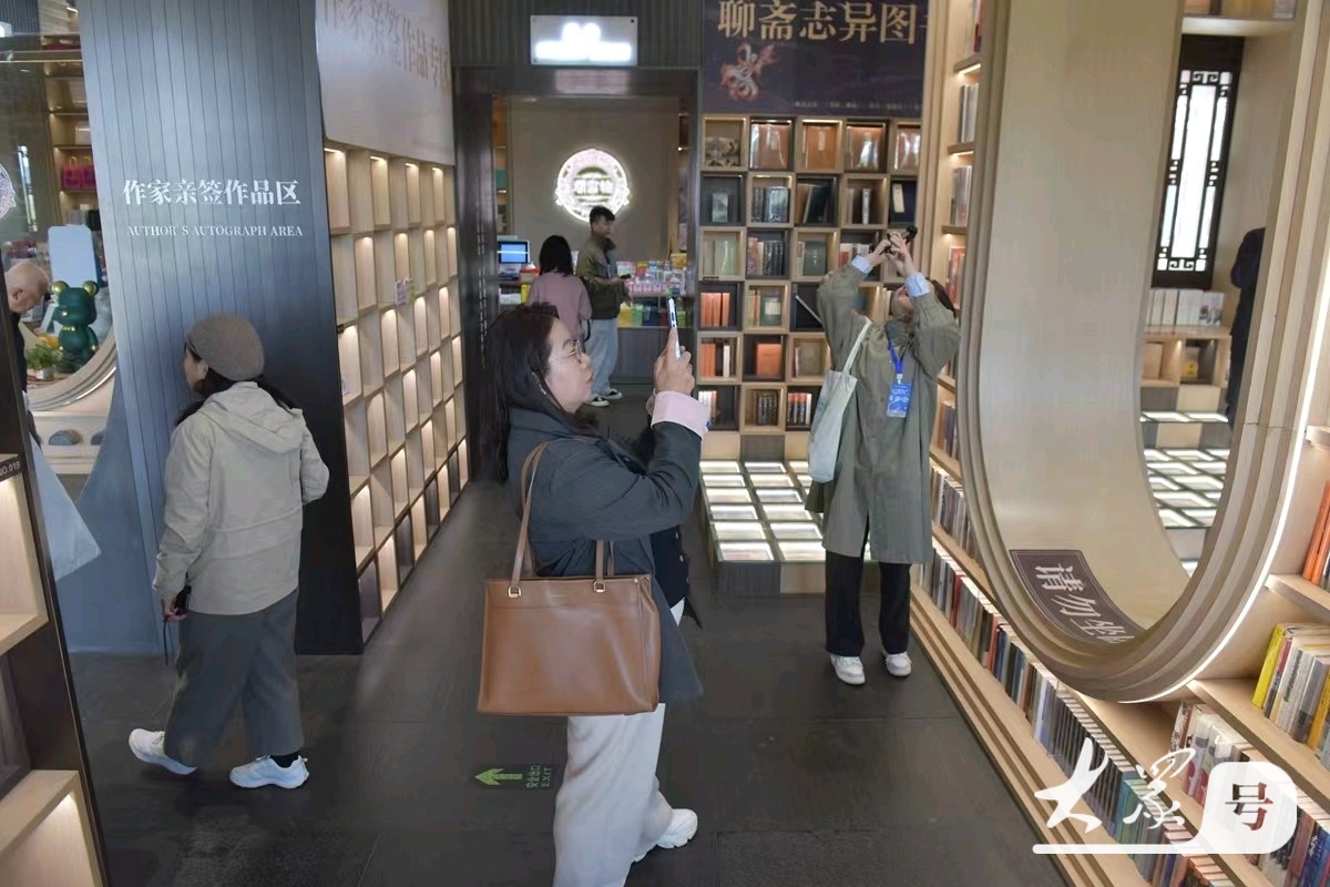 聊斋志异专区勾起探究兴致,读者或驻足翻阅,或静心品读,老人用放大镜细品文字,孩童沉浸书海。