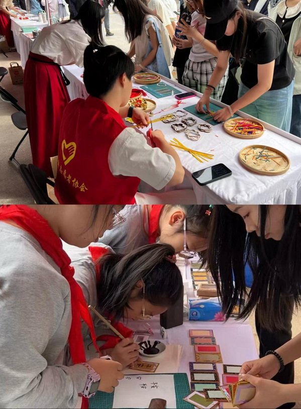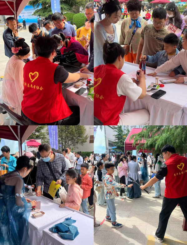 活动期间,志愿者们身着传统服饰与红色马甲,精神饱满、分工明确,全身心投入志愿服务保障工作。在八大试炼互动区,志愿者们有序引导读者参与投壶问路、飞花令、魔法汉字等趣味项目,协助维持现场秩序、解答咨询疑问,用热情服务保障活动高效开展;在文创兑换区,志愿者认真整理礼品、精准核对兑换信息,助力读者顺利完成兑换,传递书香暖意。