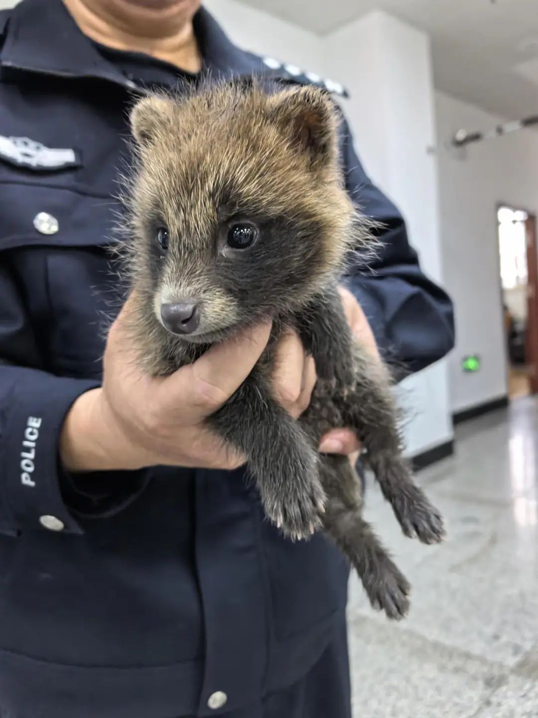 接到求助后,民警立即赶到现场,发现这只动物体型娇小,是一只幼崽,民警找来纸箱,小心翼翼地将他放进纸箱内,带回派出所。