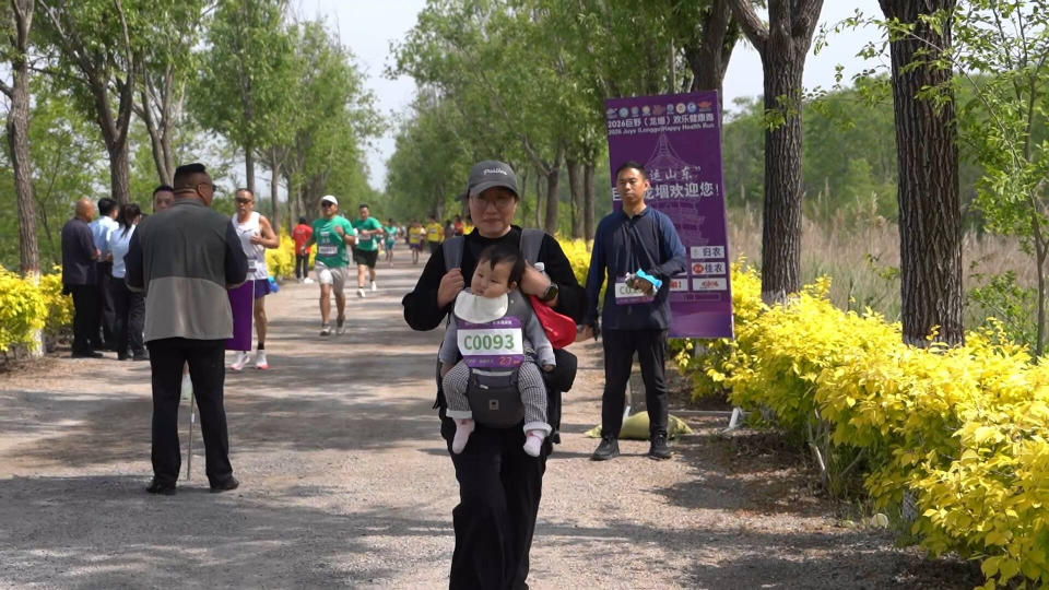 参赛选手王海华:“我们是从金乡专门赶过来的,这次第一次带着孩子参加这个活动,非常开心,不仅跑完了全程,还拿了奖,还给小朋友们补充了能量,中途还给吃的还给喝的,希望下次还能参加。”