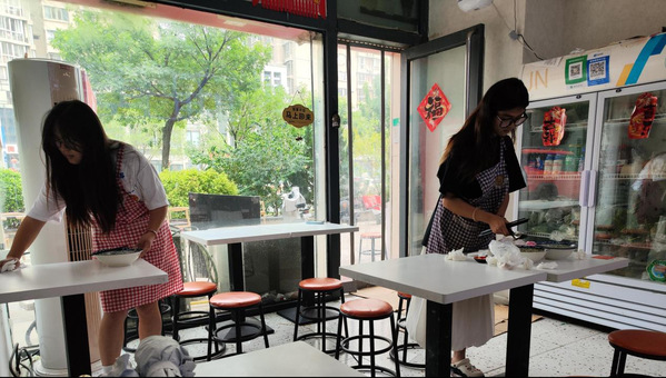 另一组女生则是在住宿附近寻找兼职工作,起初屡遭拒绝,通过多次尝试,最终找到了餐馆服务员工作,主要负责打扫卫生和上菜,经过一天的辛苦努力,共收入320元。