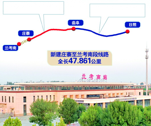 日兰高铁又名鲁南高铁,是我国“八纵八横”高速铁路网的区域连接线,全线由日照西站至兰考南站,全长494公里,主要途经山东南部地区,设计时速350公里,在山东设日照西站、厉家寨站、莒南北站、临沂北站、费县北站、蒙山站、泗水南站、曲阜南站、济宁东站、济宁北站、嘉祥北站、巨野北站、菏泽东站、庄寨站;在河南设兰考南站。在曲阜,改线通过联络线引入曲阜东站。日兰高铁开工建设时间较早,全线分段施工,分段开通。2016年底,日兰高铁临沂至曲阜段率先开工,于2019年11月运营;曲阜至菏泽庄寨段建设完成后,也已于2021年12月开通。目前,日兰高铁山东段基本全部投入运营,菏泽庄寨至河南兰考段成为全线贯通的最后一环。庄寨至兰考南段线路全长47.861公里,经山东菏泽曹县的庄寨站引出后,过河南商丘民权县、开封兰考县,接入徐兰高铁兰考南站。