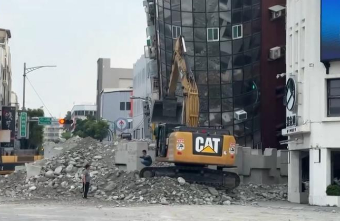 台湾花莲北滨街部分倒塌大楼拆除作业持续