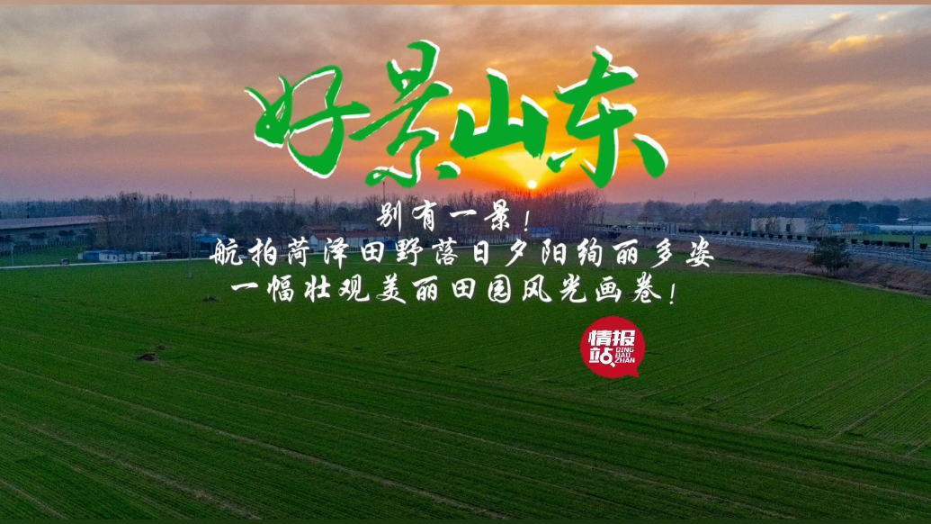 果然视频·好景山东|航拍菏泽田野落日别样美,一幅壮观的画卷