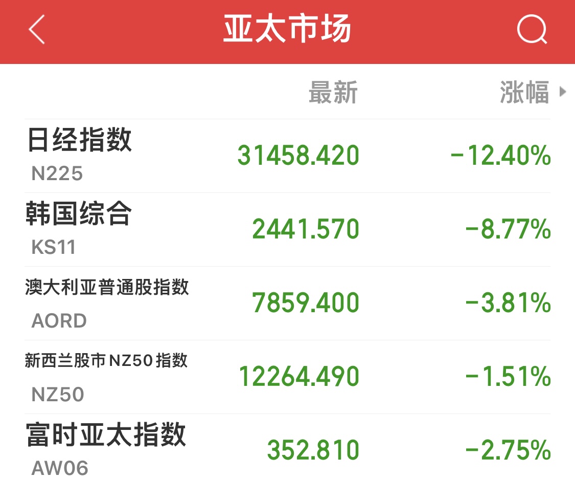 韩股市暴跌触发熔断机制,日经股指创历史最大跌幅两度熔断
