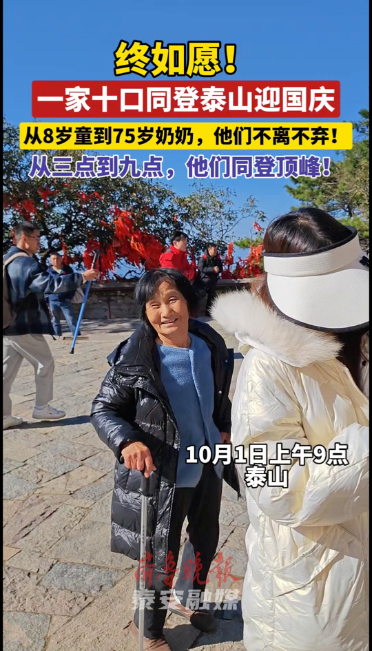 果然视频丨 终如愿!一家十口同登泰山迎国庆,从8岁童到75岁奶奶,他们不离不弃!从三点到九点,他们同登顶峰!