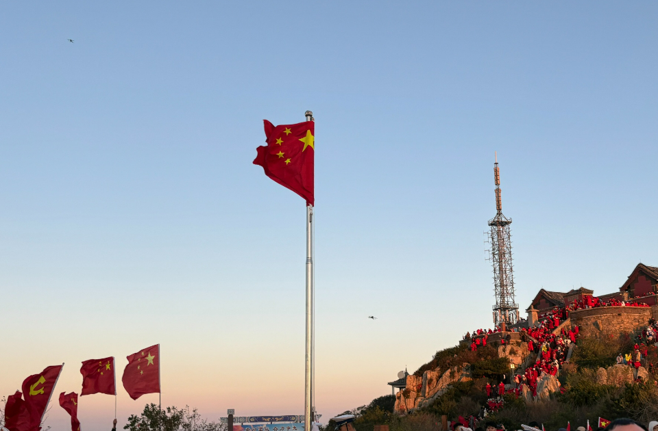 清澈的爱,只为中国!国庆节,泰山之巅一片红色的海洋