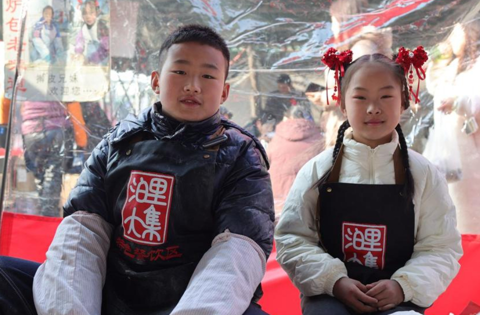 青岛泊里大集:“擀皮小兄妹”一个13岁,一个8岁