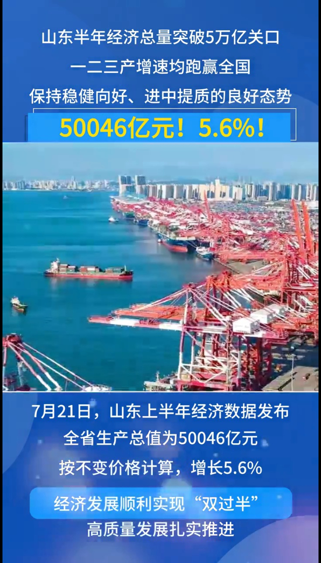 50046亿元、增长5.6%,上半年山东经济实现“双过半”