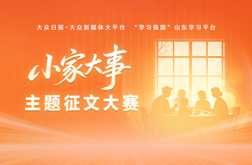 2026年,是中国共产党成立105周年,也是“十五五”开局之年,为充分展示党的十八大以来,党和国家事业发生历史性变革、取得历史性成就,人民群众不断增强的获得感、幸福感,尤其是齐鲁儿女在党的坚强领导下“小家”生活中发生的深刻变化,即日起,大众日报·大众新媒体大平台、“学习强国”山东学习平台联合启动《小家大事》主题征文活动。