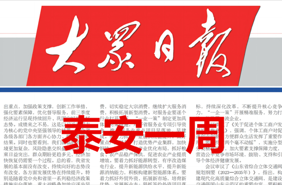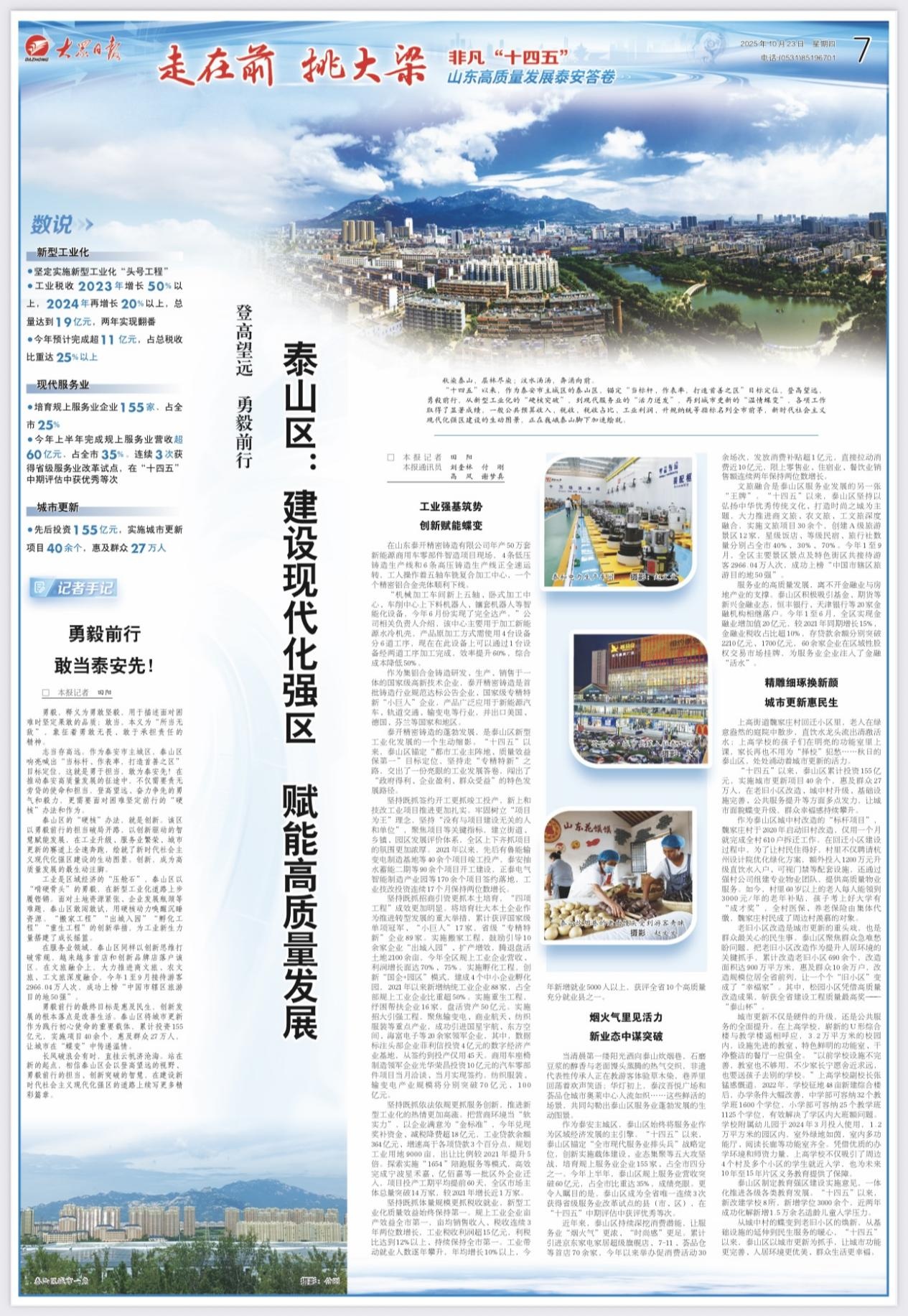 大众日报·泰安一周:攻克多项卡脖子技术,再造一个新型工业泰山!推出整版重磅策划“新型工业看泰安”