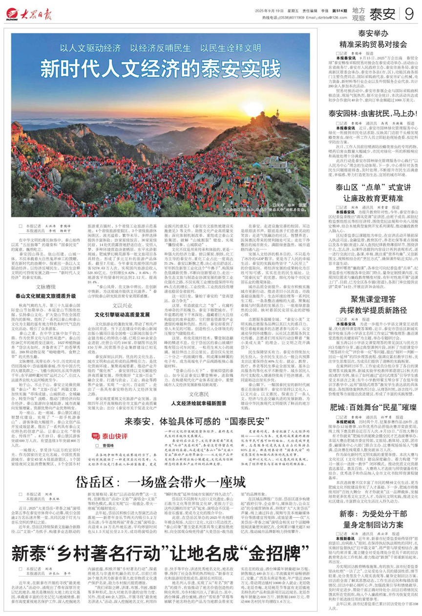 大众日报·泰安一周:“泰山论坛”在泰举行,大报推出重磅策划《新时代人文经济的泰安实践》