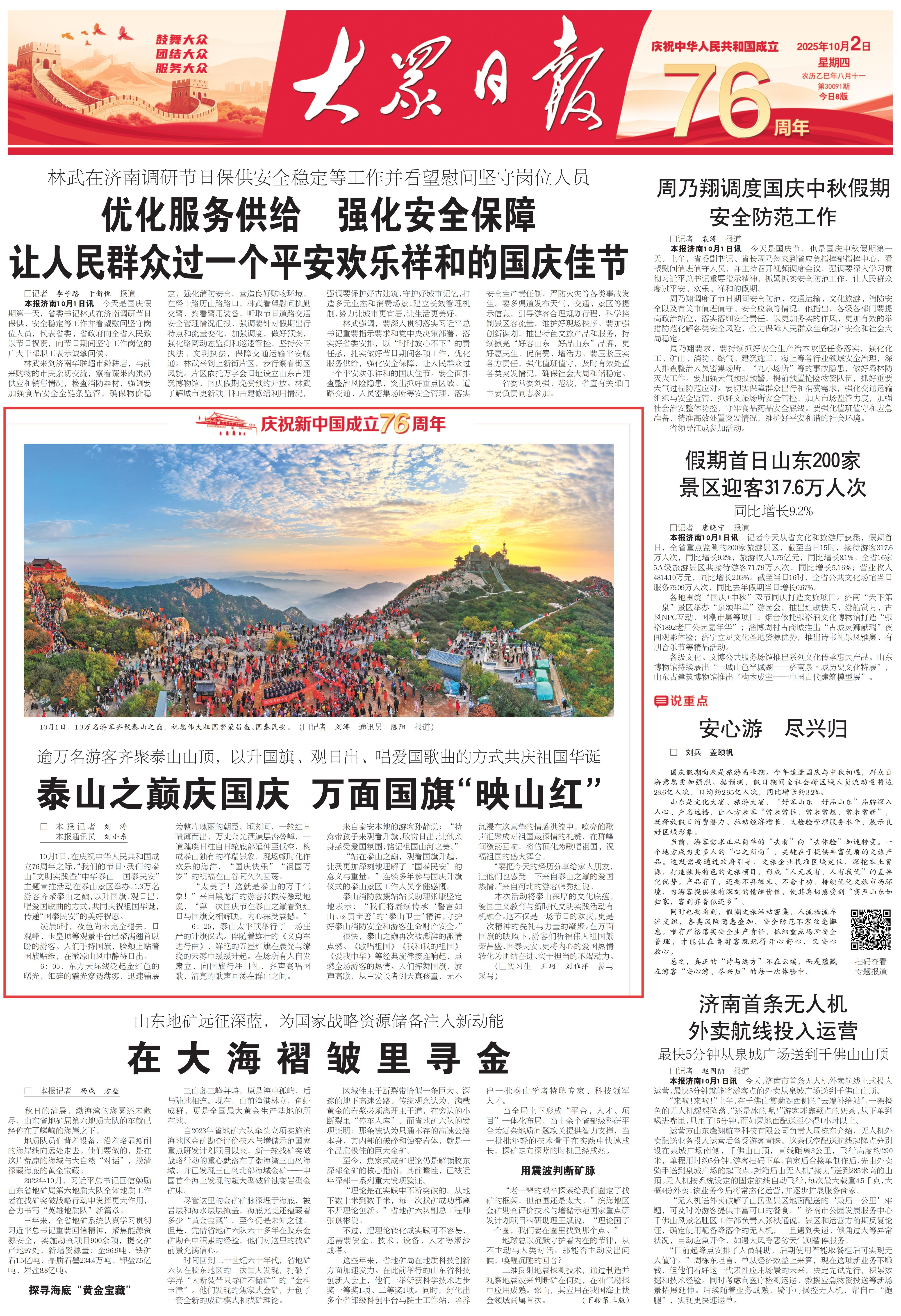 大众日报·泰安一周:泰山之巅庆国庆上头版,推出重磅策划《甜了八方客 红了一片天》