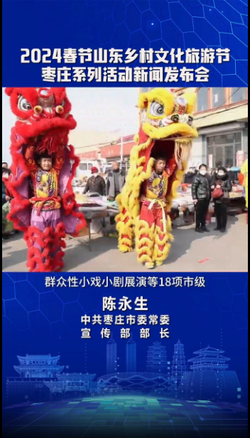 1月18日至3月11日,2024春节山东乡村文化旅游节枣庄系列活动以“家家挂红灯,户户贴春联,村村有好戏——回村过大年”为主题,精心策划推出“手造大集”系列年货节、群众性小戏小剧展演等18项市级、44项区(市)级重点活动和128项特色活动,让广大群众“寻年味、赏民俗、过大年”。