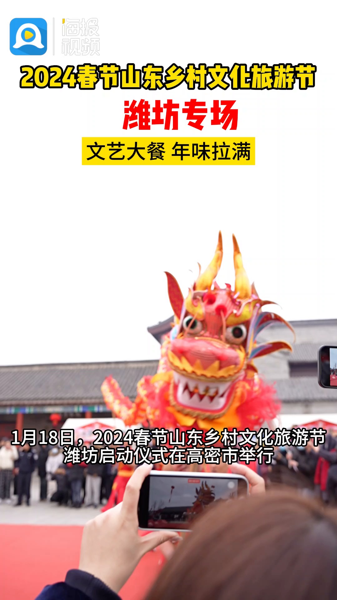2024春节山东乡村文化旅游节潍坊系列活动将于1月18日至3月11日(癸卯年腊月初八至甲辰年二月二)举办。期间,将举办72项具体活动,为广大群众带来一场别开生面的精彩文化盛宴。大众新媒体大平台潍坊频道开设专题,聚焦潍坊各地精彩活动。