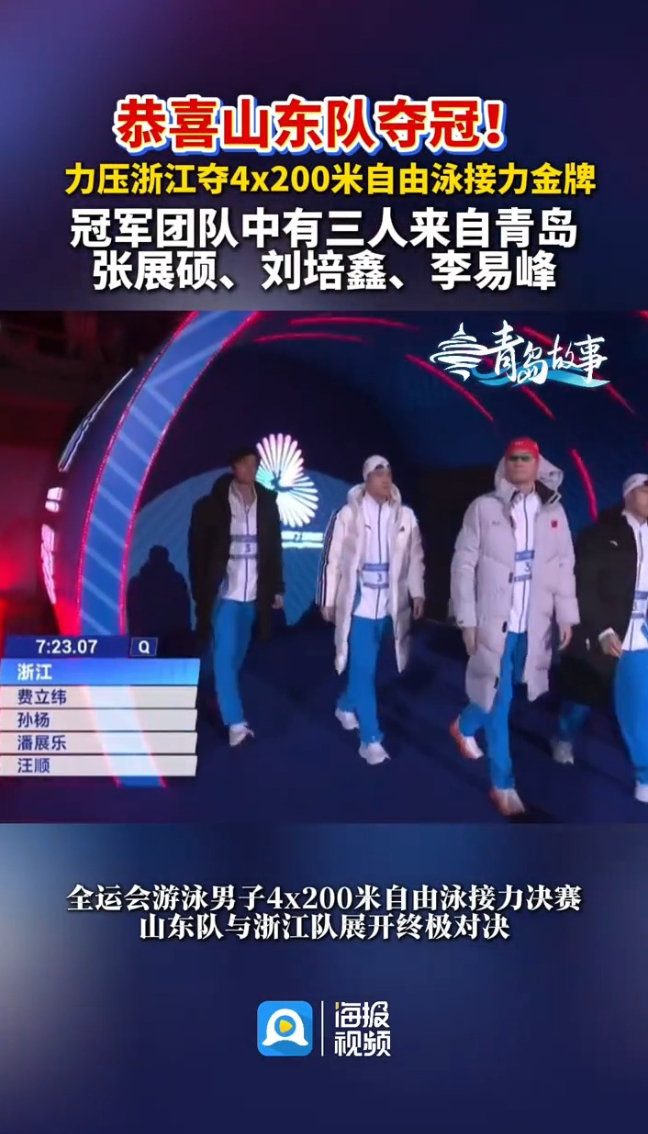 张展硕全运会第4金到手!4x200米自由泳接力山东队夺冠