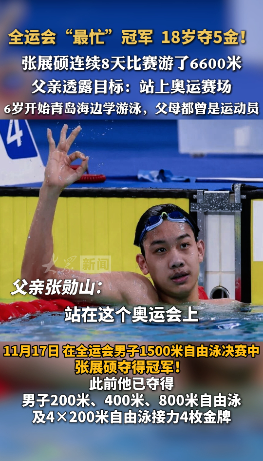 父亲揭秘18岁张展硕全运会夺5金幕后,下一个目标是奥运会