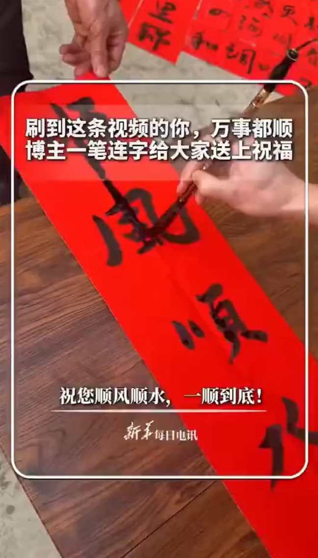 一笔连字送祝福祝新年一顺到底