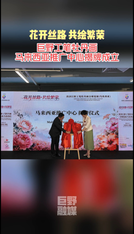 【走在前 挑大梁·文化“两创”担使命】巨野工笔牡丹画马来西亚推广中心揭牌成立
