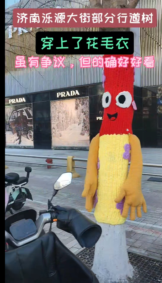 济南泺源大街部分行道树穿上“花毛衣”!虽有争议,但的确好好看